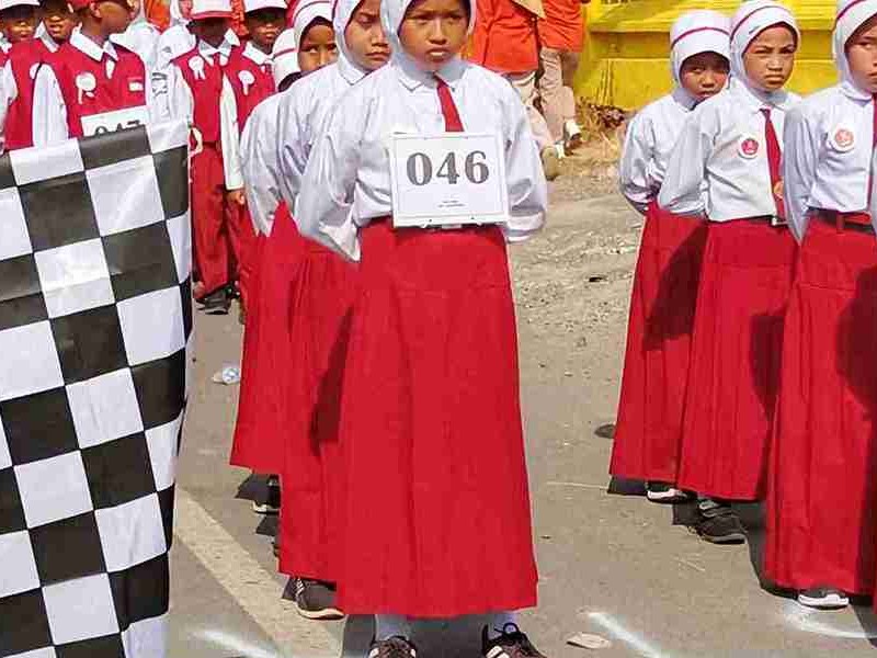 Siswa putri Sdn 4 Selomukti mengikuti lomba gerak jalan