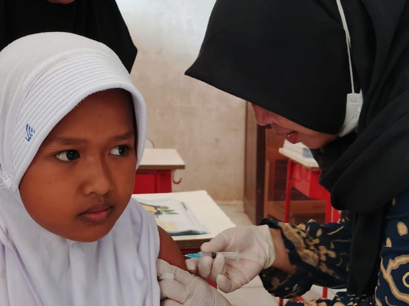 Siswa-siswi kelas 1,2 dan 5 melakukan imunisasi tentang pengebalan tubuh DTT ( Difteri dan Titanes )